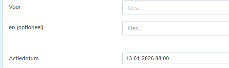 Je kunt een standaard tijdstip opgeven, die altijd nog aan te passen is. Bij de diverse overzichten en de widgets wordt ook de tijd bij de actiedatum getoond.